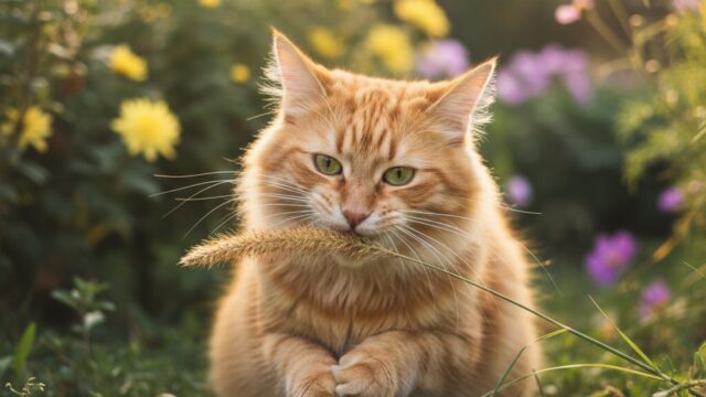屋外採取の穂で猫と遊ばせる行為は、芒の刺入・誤飲・寄生虫付着の観点から回避が無難