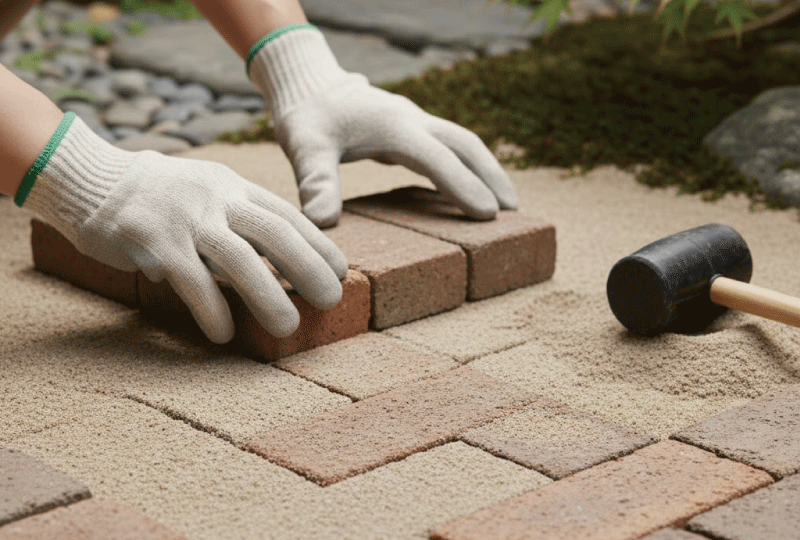 レンガの砂決め工法で沈みを防ぎ一生モノの道を作る