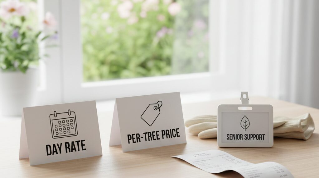 メリットは、あなたが予算を立てやすいこと。初めて剪定を頼む人には、心理的なハードルが下がります。一方で、落とし穴は「価格表は標準条件での目安」ということです。たとえば、搬出が大変だったり、枝葉が予想以上に多かったり、駐車ができずコインパーキングが必要だったりすると、追加が出る可能性があります。